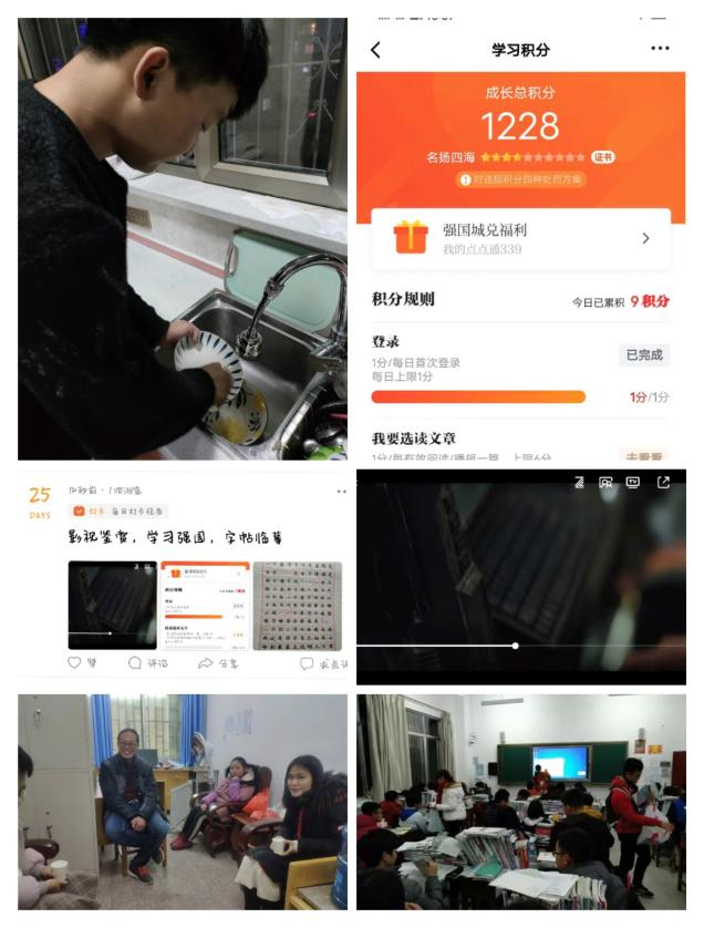 本周,我们完成了母校回访,跟老师聊起了以前的点点滴滴,感受到了母校的温暖,也感受到了老师的关怀。同学们进行了影视赏析交流,王明军与杨文宇同学观看了电影《流浪地球》并撰写观后感。本周小组成员也充分完成了临摹字帖,在学习强国中学习,每日学习积分在40分左右,锻炼1个小时左右,且部分成员学习强国任务已经达到1000分。同时本周的感恩实践我们同样选择了做家务,在切身参与家务劳动以后,明白了父母的艰辛与不易。
