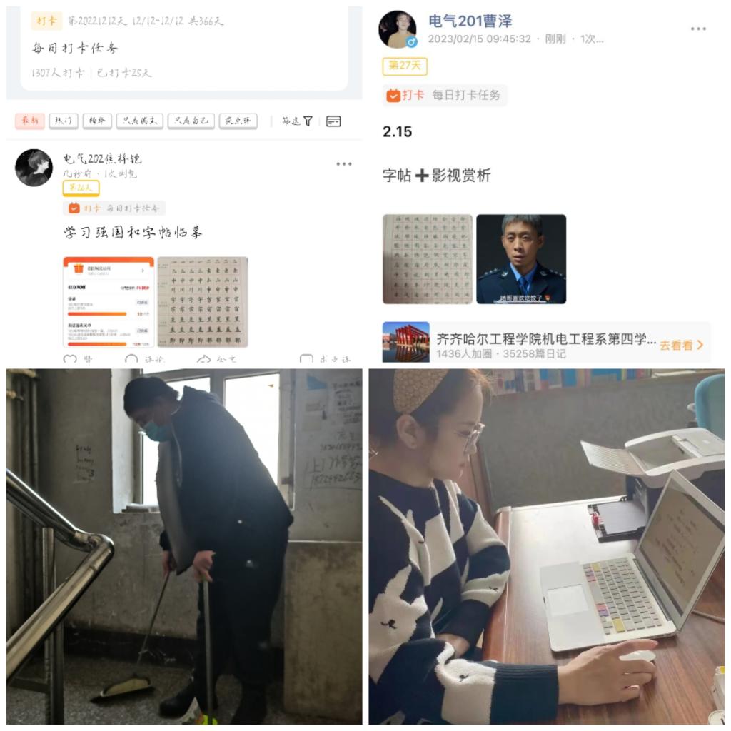 电气201班第四学期第五周,本周小组同学都完成了字帖和学习强国的每日打卡。