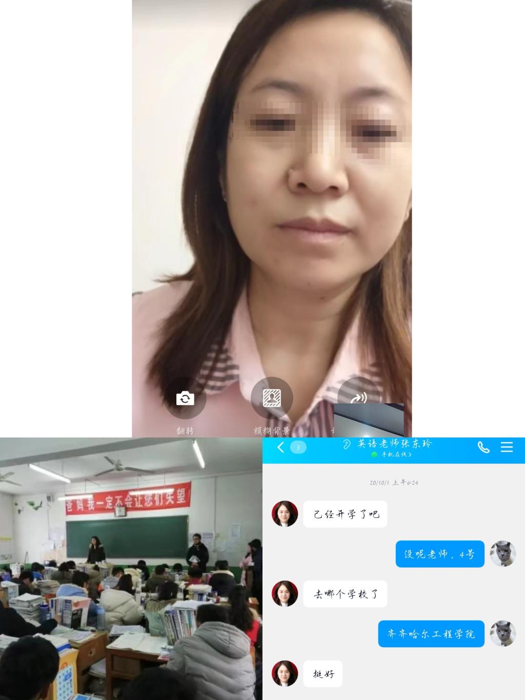 光阴似箭,一转眼我们已经来到齐齐哈尔工程学院很久了,虽然每天都紫忙紧张,但却又让人感觉到充实与快乐,从母校离开的的这些日子里想念高中老师,明白了老师对我们的谆谆教导。在2月16日机电系233组衣见娥,赵若曦,潘明礼,肖剑四位同学分别用手机聊天,视频,线下回访等方式问候老师。