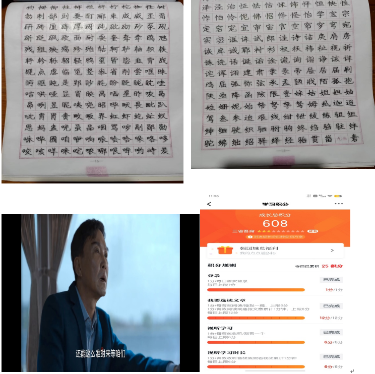通过本周的学习,我们每天按时完成任务,提高了自己的能力,并从中学习到很多知识。