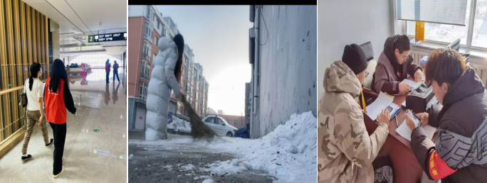 汽服20级215组成员在第四学期活动实践中进行志愿服务活动。王安琪同学2月21日在青岛市城阳区人民医院做志愿者服务;马明鹤同学在2月18日在齐齐哈尔市克山县金鼎社区为社区清扫过年放爆竹留下的垃圾;张振鹏同学在社区疫苗志愿服务中共完成48小时。