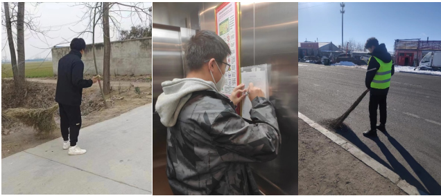 2023年2月21日机电系第239小组成员高帅、陈佳豪、杨爽开展社会实践项目,两名成员选择了自发前往社区进行清扫工作,一名成员进行了社区公共场所定期消毒工作。