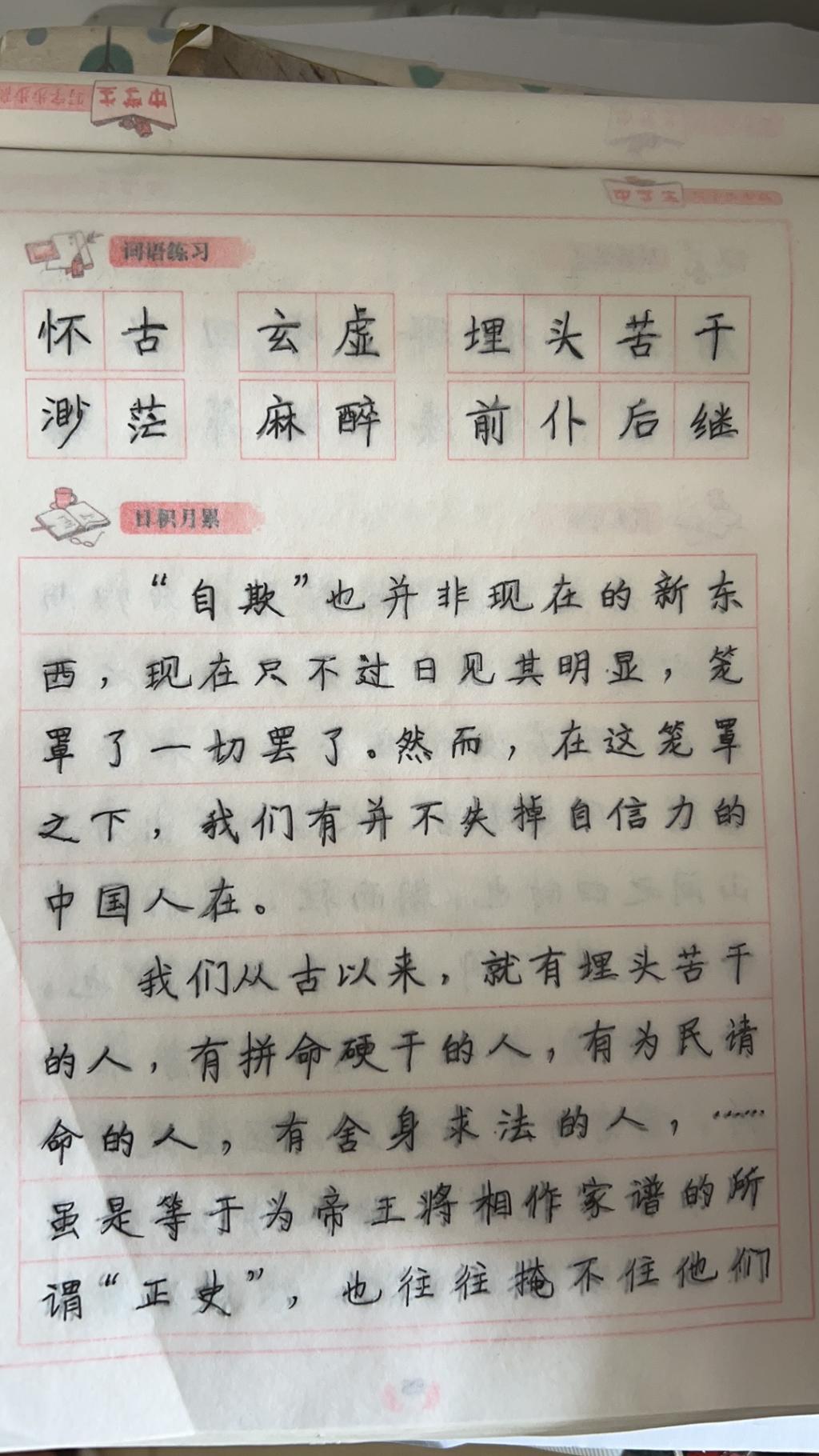 在21号上午我和毕盛一起练了字帖,毕盛同学在我们小组当中是最值得表扬的,他练的不仅快,而且字写的十分工整,相比我确实好了不止一星半点。
