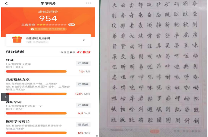 在第四学期中,我们小组四人严格按照学校要求进行了一系列活动。回忆过往,同学们进行了字帖临摹和电影赏析,通过二战那部峥嵘岁月的影片,让我们不禁回忆起革命战士的伟大,观看红色电影长津湖。今日之安逸,全是先辈以血肉铸成,所以我们一定要珍惜现在得之不易的幸福生活。一直以来,小组把重心放在了学习强国和字帖临摹上,提升自己的书写能力,小组四人齐心协力,按要求严格完成学校下发的任务。在第六周时,小组四人各项任务已全部达标,完美利用了在家时间,让假期生活变得更有意义,丰富自己的假期生活!