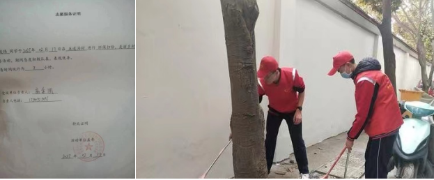 确认活动时间和活动形式后,打扫社区周边卫生,志愿者们身穿志愿服务马甲,即使天气寒冷,也阻挡不了志愿者们前进的步伐。志愿者们冒着灰尘,积极发扬不怕脏不怕累的高尚风格,干的热火朝天。经过七个小时的清扫社区焕然一新,得到社区百姓的一致好评。