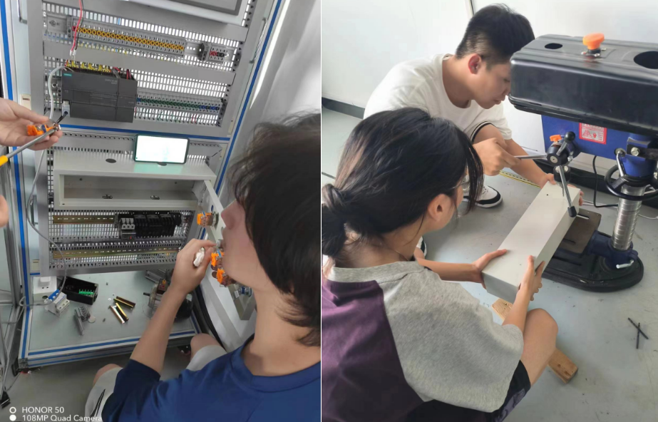 在辅导员陈迎春老师的指导下,跟随指导老师在岗位进行操作与学习。熟悉岗位,初步了解电气设备的安装与调试。对电气设备进行安装与调试。薛立为同学说:“我细心的做完所以老师布置的任务,通过老师的带领更加了解自己所做事情的重要性,我会在接下来的工作中恪尽职守,认真负责,不负第三学期的实习机会。”努力过后总会有收获,同学们收获的不仅是知识,更是友谊、经验、生活。经历了三周的第三学期实习,电气223班同学们均有提升,相信在接下来的第三学期实习工作中,大家会做得更好。