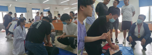 在李老师团队详细地讲解及实际操作演示中,同学们学习了基本的急救技能,包括如何判断患者意识、正确的心肺复苏方式、如何运用实际环境资源等。同学们非常感兴趣,积极参与到按压、人工呼吸、AED的使用中。通过此次活动,使学生们了解了心肺复苏的急救知识,并能上手实操作,在以后的工作及生活中,可以用所学的救护知识帮助自己及他人。