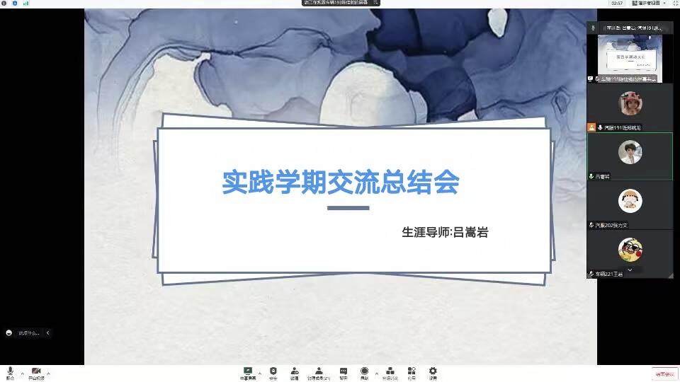 7月2日,生涯导师吕嵩岩线上召开专业实践第一周总结会,主要说明了关于本次专业实践的具体考核要求,包括每日的作业任务、每周的小结以及自主学习的打卡和考核内容;除此之外,关于专业知识和纪律方面,吕嵩岩老师为我们进行了详细的答疑,同时说明了关于我们在专业实践过程中,时刻牢记安全第一的原则。