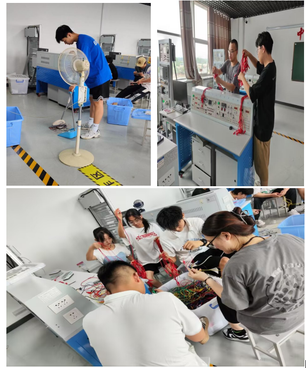 我们的专业实践地点在校内的汽车大楼的电气安装与布线实验室,由王德海老师全程指导,开始先进行安全教育,让我们每个人都应该在保证自身安全的前提下进行实践学习,随后给我们分配了相应的实习任务,实验室的温度很高,工作一会就大汗淋漓,这也让我们感受到了工作的辛苦,刚开始时,我们还有一些迷茫,不知所措,但在指导老师的引领让我们很快熟悉了工作内容和方向。经过了一周的实践学习,实验室的线都被修复和整理分类,我们也掌握了修复线的技能。