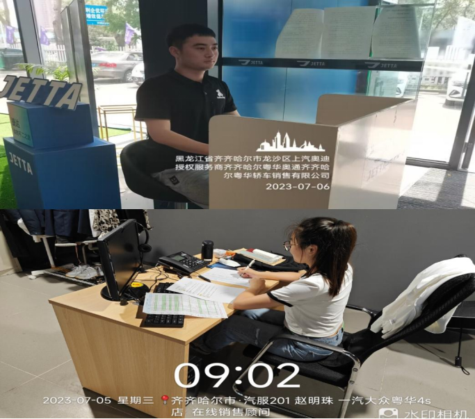 本次专业实践我们选择在齐齐哈尔粤华轿车销售有限公司实习,汽服202班肖健同学被安排在销售顾问岗位,负责接待客户、解答客户疑问以及登记到店客户信息,形成展厅日志。汽服201班赵明珠同学的工作内容主要是接听客户电话,解答客户疑问,并提出相关产品信息和服务。