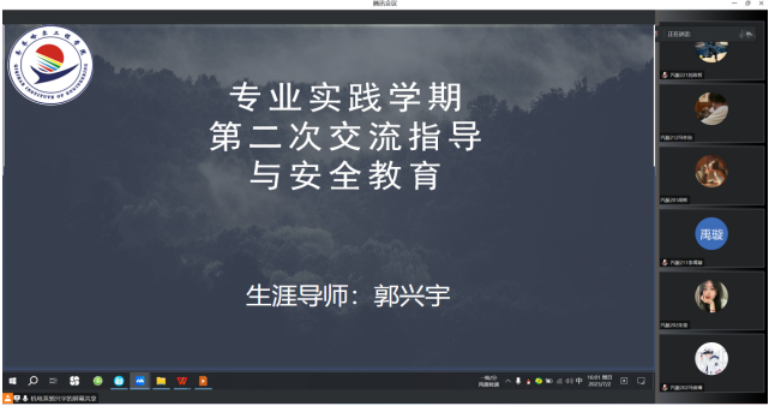 专业实践学期来到了第二周,为更好的了解和检验第一周专业实践学期任务的进度与完成情况,同时为更高效的完成专业实践学期的接下来的各项工作,在7月5日下午,生涯导师郭兴宇老师组织同学召开了专业实践学期第二次交流指导与安全教育。