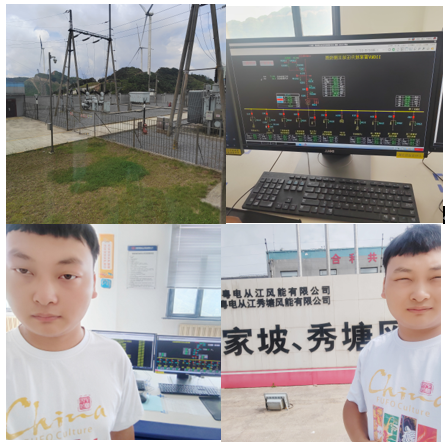 为了加强专业知识与实践相结合,加深对电力系统的理解。2023年7月29号,电气201班闫元源与电气202班顾翔在贵州粤电从江风能有限公司雷家坡、秀塘风电场升压变电站进行参观学习。
