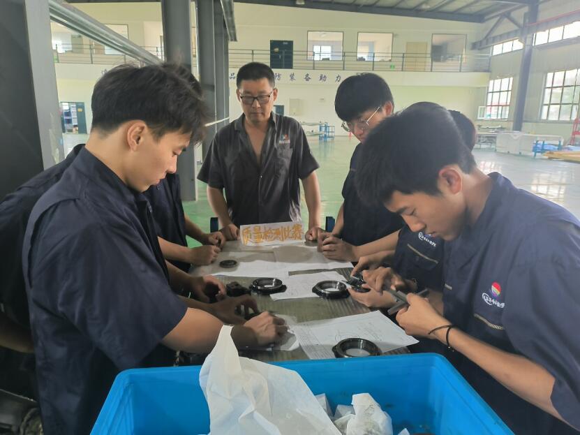 比赛过程中,学生们展现出极大的热情和责任心。他们细致入微地检查每个零件,严格按照企业质量标准进行评估。同时,李师傅的现场指导也让他们获得了实际操作中的宝贵经验。