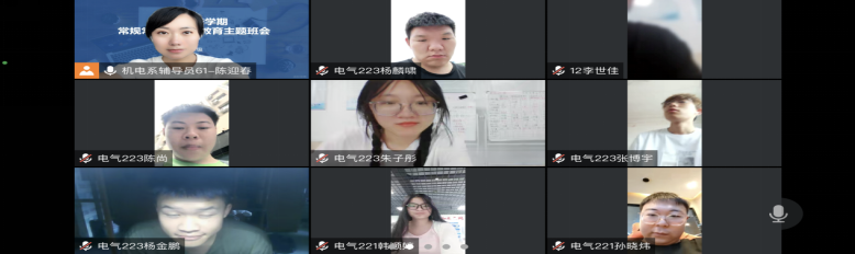专业实践学期是大学生获取实践经验和锻炼能力得重要途径,为了保障学生在实习期间的安全,8月2日辅导员老师陈迎春在线上组织开展专业实践学期安全教育大会。
