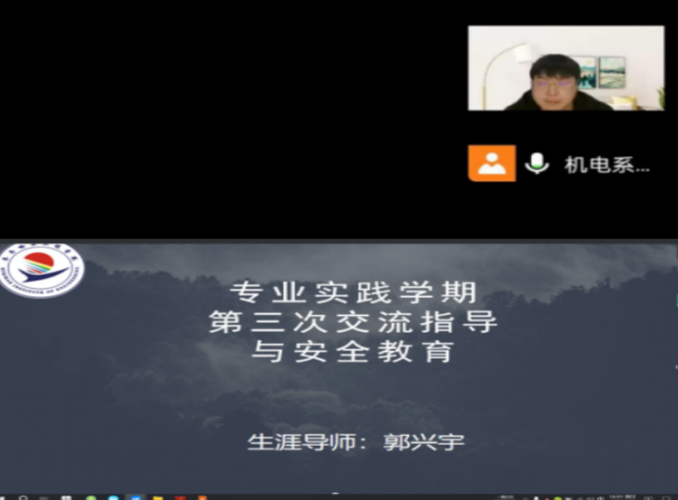 伴随着专业实践学期来到了第三周,为更好的了解前两周工作情况与安全情况,为更好的完成专业实践学期接下来的各项工作,在7月2日下午,生涯导师郭兴宇利用腾讯会议组织新能源专业、汽服专业同学召开了专业实践学期第三周交流指导与安全教育。