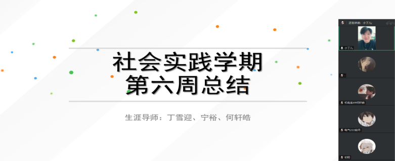社会实践学期第六周结束了,机电工程系生涯导师何轩皓、宁裕、丁雪迎于2月16日为学生们开展了一场总结会议。